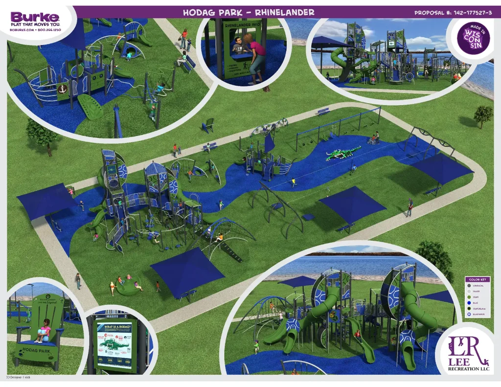 The new playground is planned for Hodag Park. The design includes modern, accessible equipment for kids of all abilities. The Splash Pad is planned for completion this Summer! The Playground will be planned once fundraising goals are met.